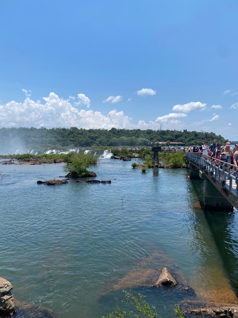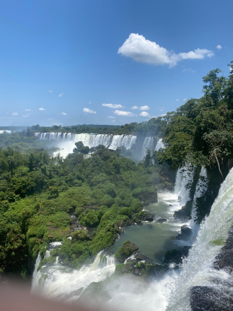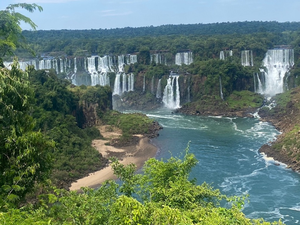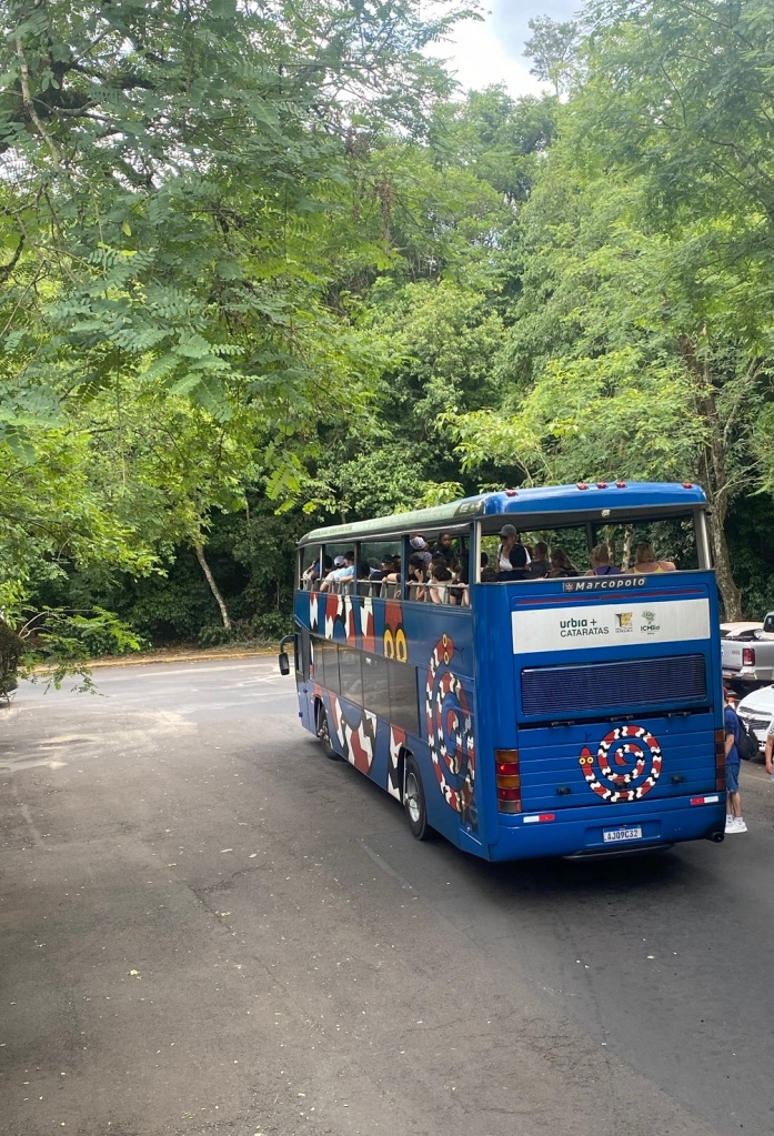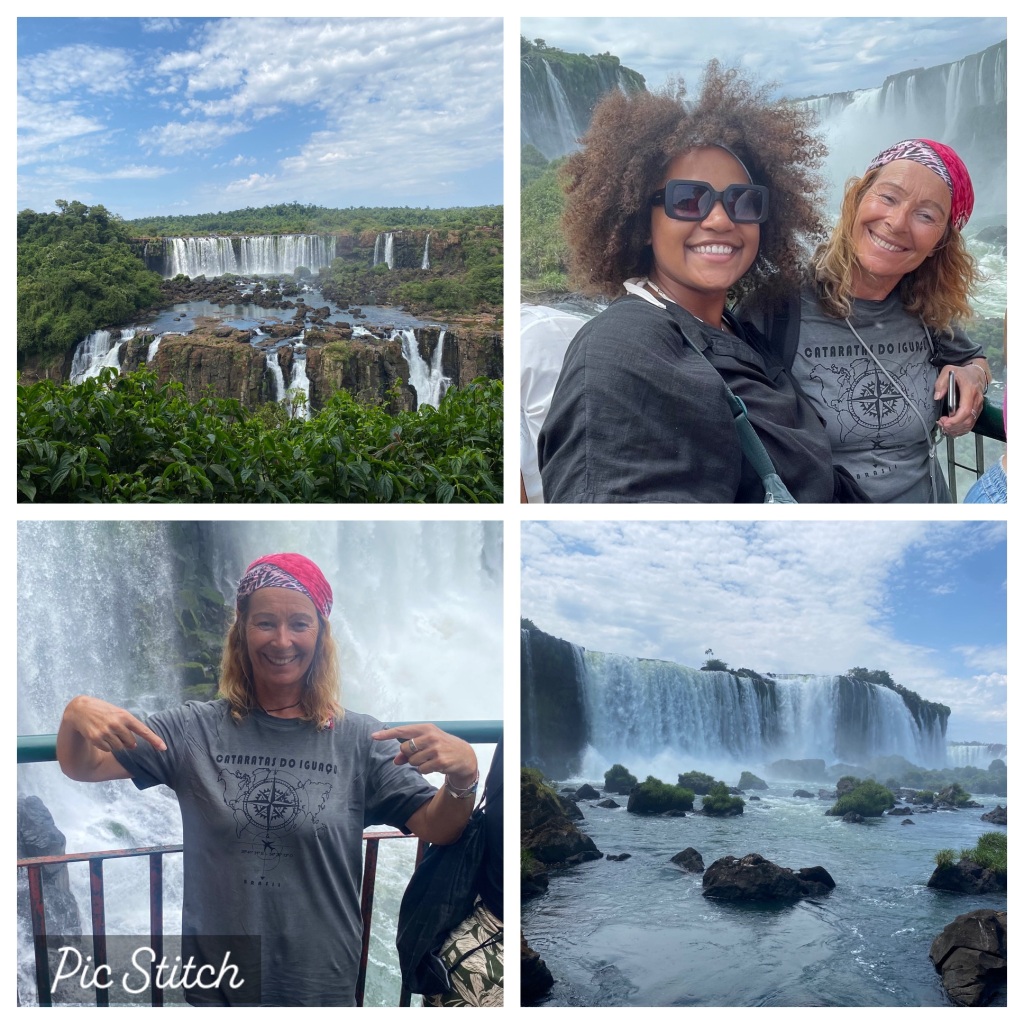 Annalouise packt ihre Sachen zusammen, denn sie reist heute wieder zurück nach Florianopolis, von da wir gekommen sind, um Freunde zu treffen. Ich rede mit den Reisenden was sie für Erfahrungen gemacht haben an den Wasserfällen. Am nächsten Tag stehen ich früh auf mache mich um 8:00 Uhr auf dem Weg. Das Hostel bietet mir eine organisierte Tour zum Eingang des Parks. Lehne dankend ab. Liebe die Herausforderung. Auch wäre es teurer. Diese Reise dauert ca 2-3h zu den Wasserfällen in Argentinien. Nehme den ÖV Bus der bringt uns, ein Paar und ein einzel Reisender, die das gleiche Prozedere vor haben😅an die Grenze von Brasilien. Da muss man aussteigen und einen Ausreisestempel in den Pass machen lassen bei der Imigration. Sonst, die Einreise nach Brasilien schwierig wird, ohne Stempel. Wir müssen auf den nächsten Bus warteten der zum Busbahnhof in Foz Iguaçu Argentinien fährt. An der Grenze Argentinien wieder aus dem Bus aussteigen. Imigration Argentinien, Pass zeigen, leider gibt Argentinien keine Stempel in den Pass. Auch im letzten Jahr so, als ich in Argentinien aus und einreiste. Dieses Mal wartet der Buschauffeur bis wir zurück sind, fahren an den Busbahnhof Foz do Iguaçu Argentinien. Dort wird der Bus wieder gewechselt der in den Park fährt. Es gibt viele verschiedene Wanderwege, um die Wasserfälle zu beobachten. Zuerst fahre ich mit einem Zug zum Wasserfall des Teufels. Das ist wirklich teuflisch was da abgeht, so viel Wasser schon Millionen von Jahren, seit es den Kontinent Südamerika gibt. Laufe viele Kilometer und schaue mir die verschiedenen Positionen und Orte der wunderschön angelegten Wanderwege und die vielen Wasserfälle. Komme aus dem Staunen nicht mehr raus. Verbringe ein paar Stunden im Park .