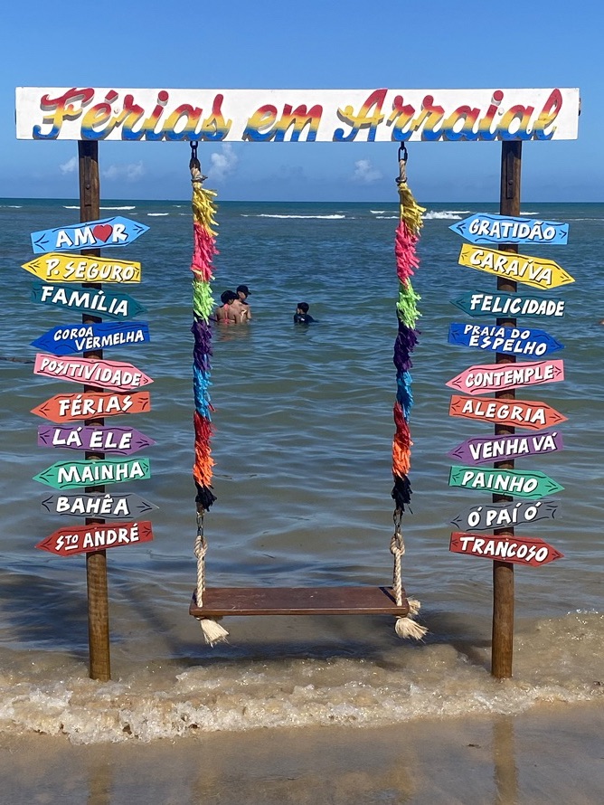 Caraíva ist ein winziges Dorf, das abgeschieden und sehr idyllisch auf einer Landzunge zwischen Atlantik und einem Fluss am nördlichen Ende des Nationalparks Monte Pascoal liegt. Auf den Sandstraßen verkehren nur Kutschen und man fühlt sich wie am Ende der Welt. Der perfekte Ort, um einfach mal die Seele baumeln zu lassen.
