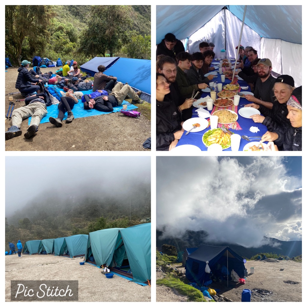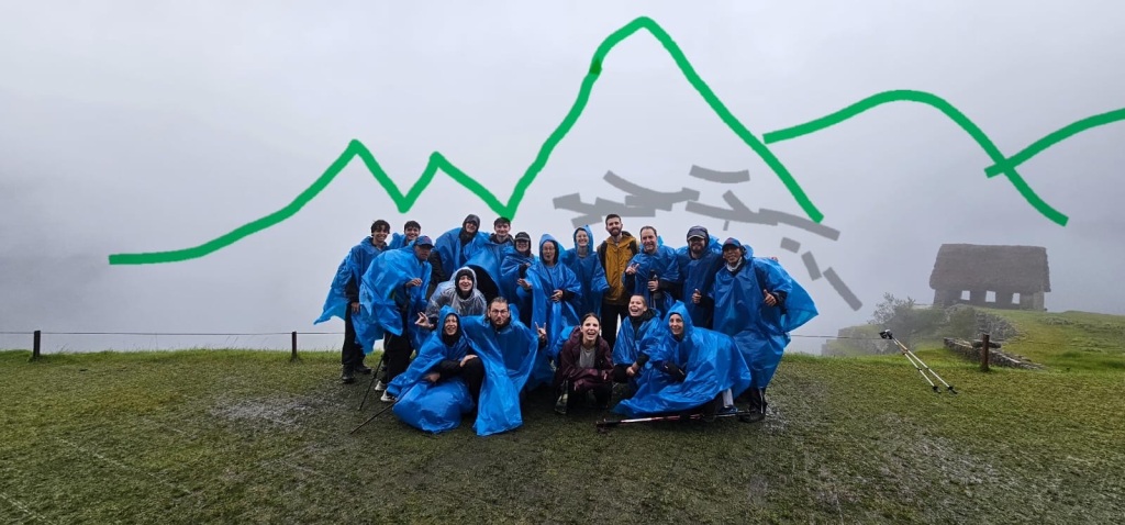 B: Heute Morgen werden wir um 4 Uhr mit dem Van vor unserem Hostal abgeholt als letzte Teilnehmer unserer Gruppe. Machu Picchu Inka Trail beginnt jetzt. Nach 2h Autofahrt kommen wir in Orubamba an. Erstes Morgenessen im Team mucho wau wau. Diesen Namen geben uns unsere Guides Pepe1 und Pepe2. 16 Menschen mit dem gleichen Ziel, 2 Guides und 25 Porters.