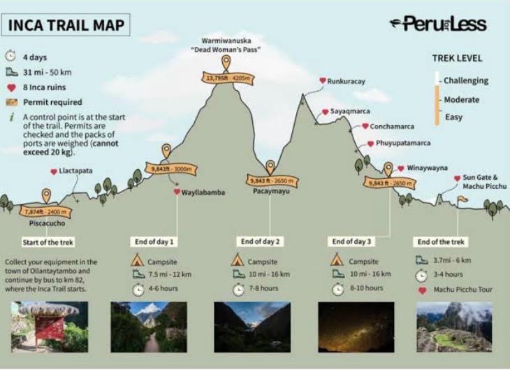 Es gibt steile Auf – und Abstiege in grosser Höhe. Die „ Steps“ sind 30 bis 50 cm hoch und verlangen einem schon etwas ab. Die Inkas haben ganze Arbeit geleistet. Im Nachhinein muss ich gestehen, dass ich körperlich zu ungenügend trainiert war. Ich kam täglich an meine Grenzen. Dennoch bereue ich keine einzige Sekunde, diesen Treck gemacht zu haben. Jeder kleine Muskelriss ( sprich Muskelkater ) war es wert.