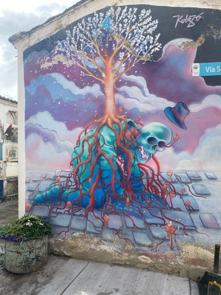 Die Stadt erlaubt auch Graffitikünstler auf dem Friedhof und veranstaltet jedes Jahr einen Wettbewerb. Das Bild muss mit dem Thema Tod und Übergang zu tun haben. Wir sahen hier echte und beeindruckende Kunstwerke.
