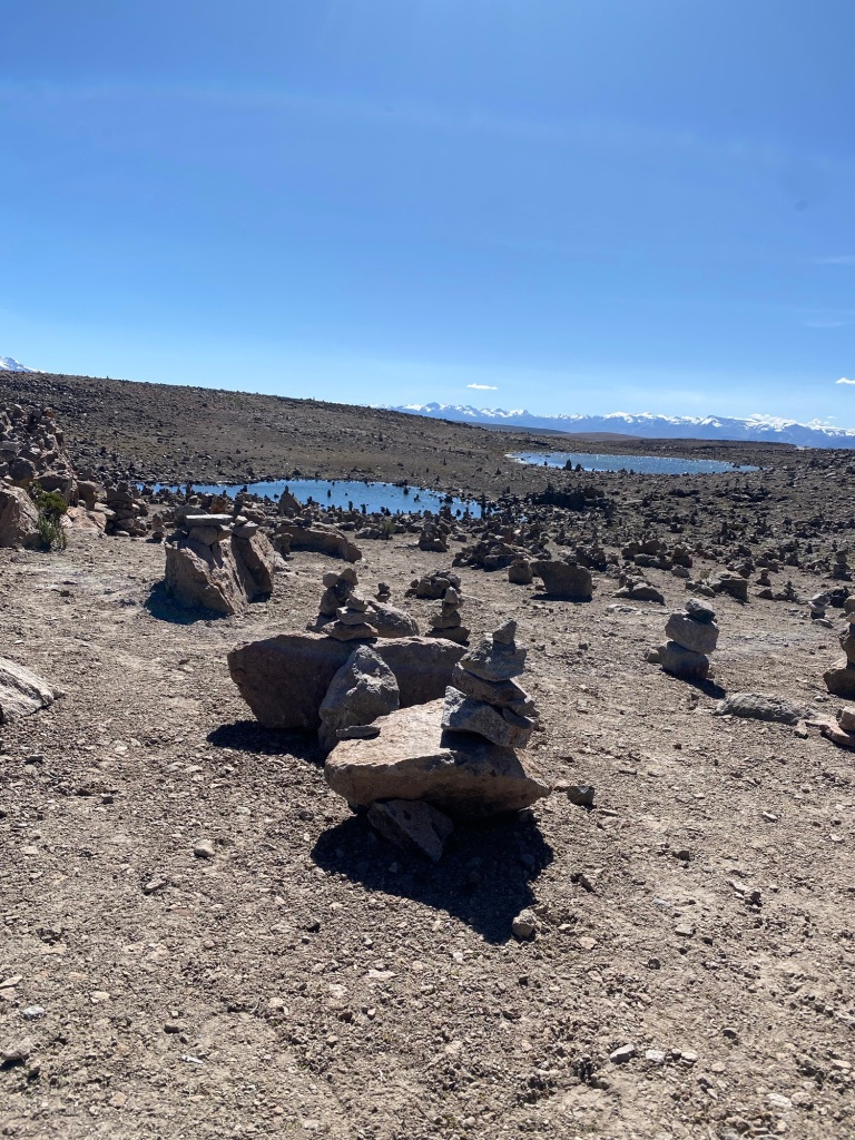 B: Moni entscheidet für die Zipline. Ich für baden in den heissen Quellen. Danach gehts weiter zum Mittagessen. Peruanisches Buffett mmm fein. Nach einer 1h Autofahrt sind wir auf 5000 müM in einer Mondlandschaft und bewundern die Vulkane um uns herum.