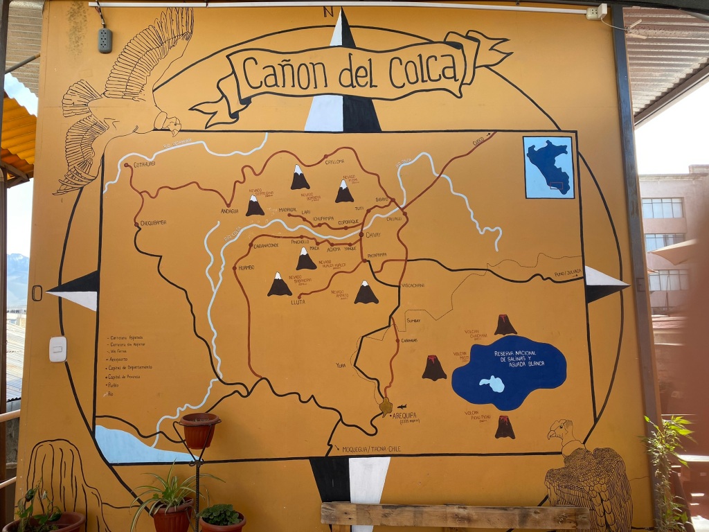 Wir buchen eine Tour ins Colca Tal mit dem tiefsten Canon der Welt ( doppelt so tief wie der Grand Canon in Amerika) auch sollten wir endlich den grössten Vogel der Welt sehen. Der Condor. Auch ein Traum von uns dieses schöne elegante Tier beim Flug zu beobachten. Gespannt schauen wir dieser Tour entgegen. Um 3 Uhr am Morgen werden wir abgeholt in unserem Hostal. 14 Menschen sitzen im Bus als wir um 330 Uhr einsteigen. Wieder geht es in die Anden. Frühstück um 6h auf 3000 müM. Danach Besuch eines Dorfes mit vielen Souvenirs.