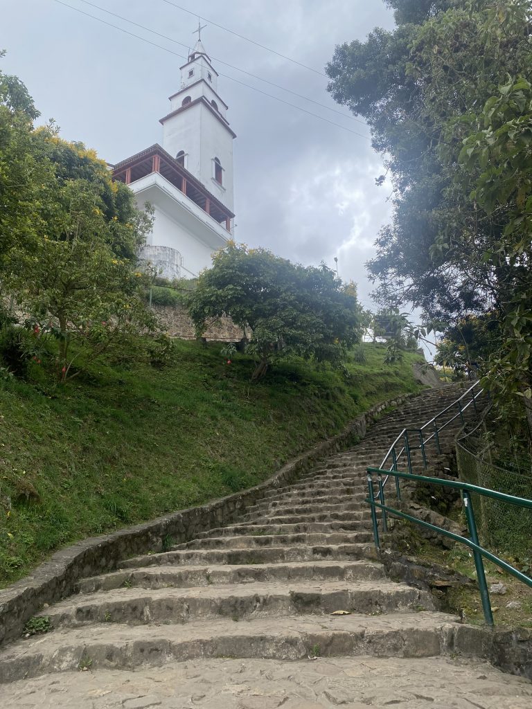 Für Touristen ein Magnet jeder will einmal auf dem Monserat die Aussicht über Bogota geniessen. Für Einheimische Trainingsstrecke 1500 Stufen 2300m von 2600 auf 3200 müM wandern, einige rennen ein gutes Höhentraining. Spüre die dünne Luft, gestern noch im Amazonas 40 müM jetzt auf 3200 müM ein gemütlicher Aufstieg genug Wasser. Auch mit der Luftseilbahn und der Standseilbahn erreichbar. Es ist beeindruckend auf dem Monserat die grösse der Stadt und die Berge im Hintergrund zu sehen.