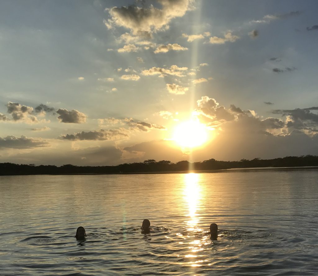 Schwimmen mit den Piranhas und rosa Delfine im Ecuador im Amazonas 2021.