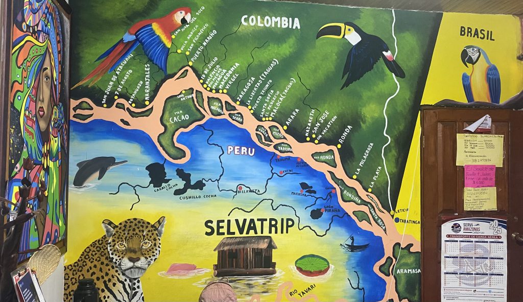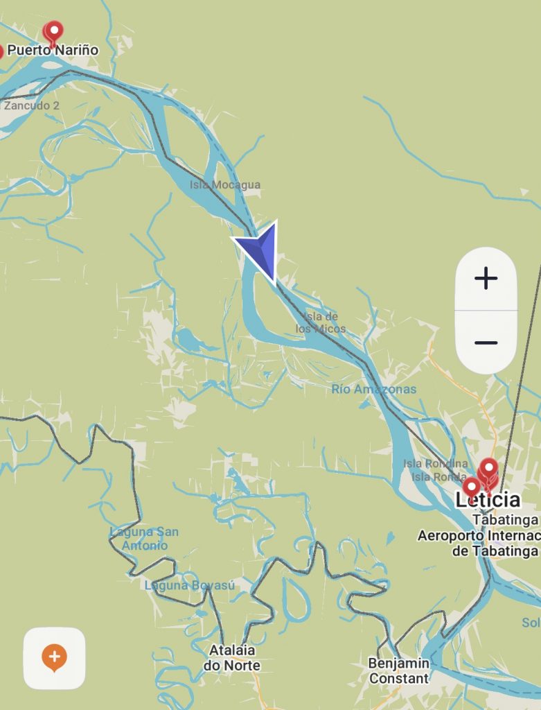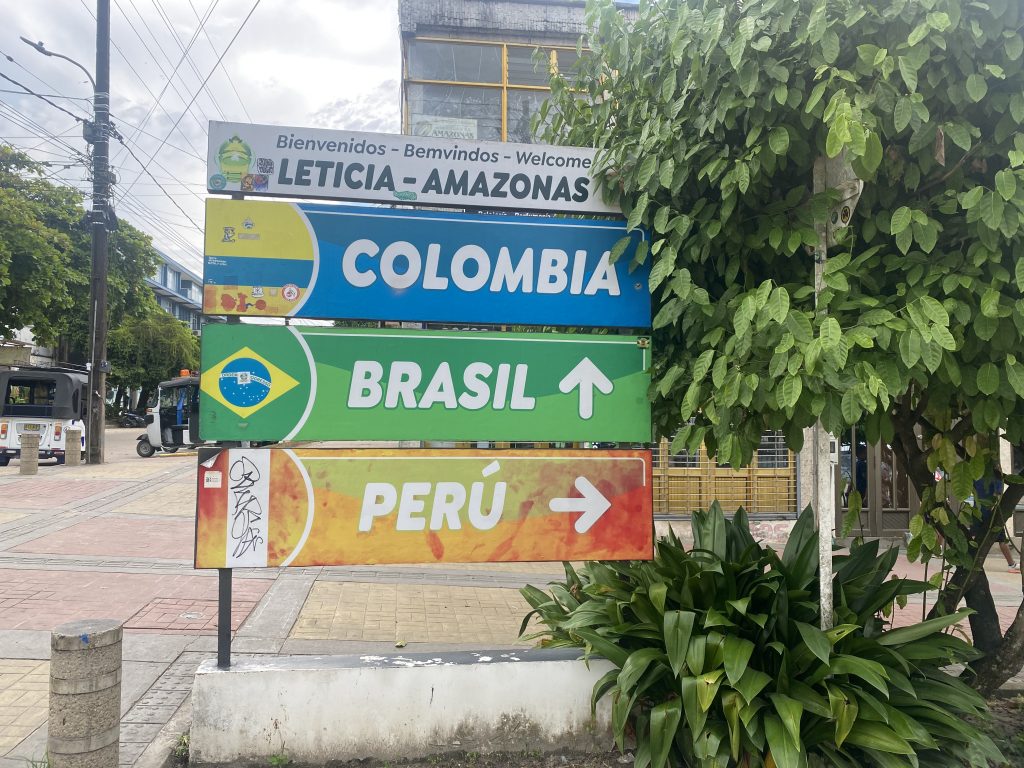 Auf wenigen Metern das Dreiländer Eck Peru, Brasilien, Kolumbien.
