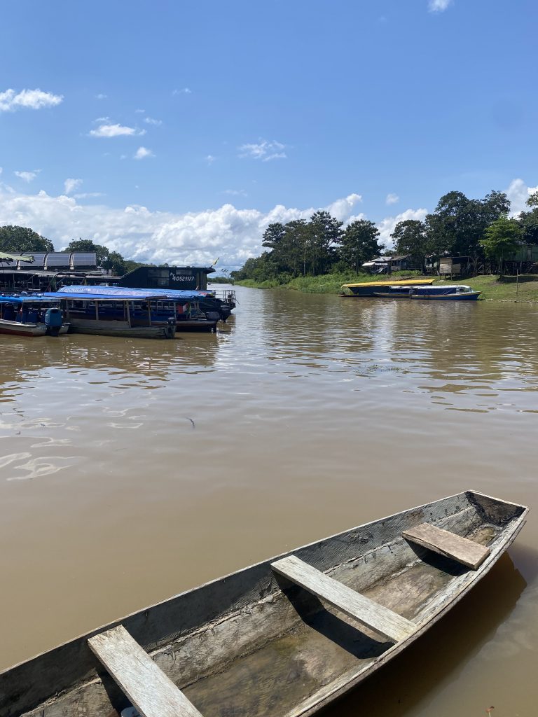 Habe keine Tour gebucht. Bin nach Puerto Nariño gereist 6 Tage. Tag für Tag zu planen. Heute die Loge Maloka Napü über Booking.com ausgesucht und gebucht. Das Ticket fürs Schnellboot nach Puerto Nariño gekauft. Von Leticia nach Puerto Nariño 2h über den Amazonas gesaust mega cool. Beim Loge suchen in Puerto Nariño einen Guide kennnegelernt. Heute fragte ich ihn, ob er mit mir die Tour mit seinem Boot zum Lago Tarapoto macht. Er freute sich, ist hier aufgewachsen und weiss für mich alles, über den Regenwald und Amazonas.